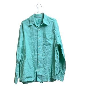 Tommy Bahama Men’s Green Long Sleeve Button-Up Shirt Size Medium 100% Linen