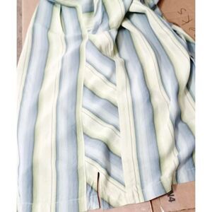 Elevate your wardrobe with this stylish Tommy Bahama men's shirt from their silk collection. This green striped button-up shirt in size Large is perfect for any occasion, whether it's a casual day out or a business meeting. The shirt features a collared neckline, short sleeves, and a relaxed fit that is comfortable and lightweight, making it ideal for summer, fall, or spring seasons.