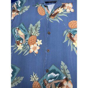 Tommy Bahama Mens Hawaiian Button-Up Shirt Size M Blue Tropical Pineapple Print