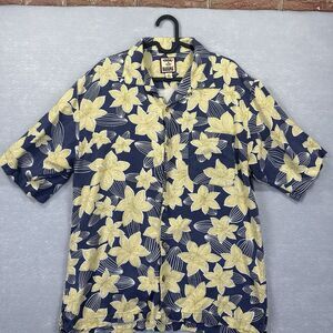 The Tommy Bahama Men's Hawaiian Camp Shirt in size Medium is a vibrant and stylish addition to any man's wardrobe. Made of 100% silk, this shirt features a beautiful floral pattern, perfect for summer, fall, and spring occasions. The short sleeves and collared neckline add a touch of sophistication, while the button closure and spread collar style enhance the classic look. This shirt is great for travel, parties, casual outings, and more, making it a versatile and eye-catching choice for any man looking for a Hawaiian-inspired shirt.