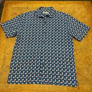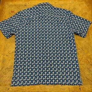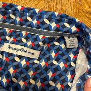 Tommy Bahama Mens Hawaiian Geo Camp Button Down Shirt Sz Med Blue Floral Print See pictures for reference and measurements