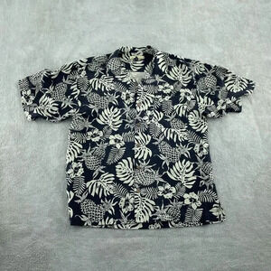 Tommy Bahama Mens Hawaiian Silk Shirt Pineapple Print Navy/Beige 4504