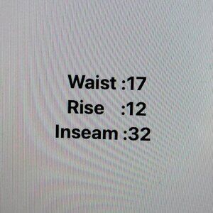 Waist = 34 inches, Rise = 12 inches, Inseam = 32 inches