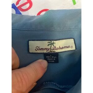 Tommy Bahama Men's L 100% Silk Button Up Short Sleeve Pocket Dress Shirt. Condition is Pre-owned. Shipped with USPS Ground Advantage.