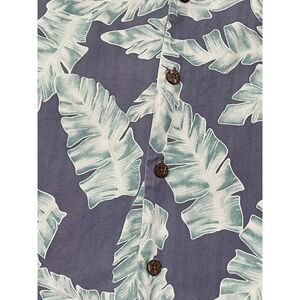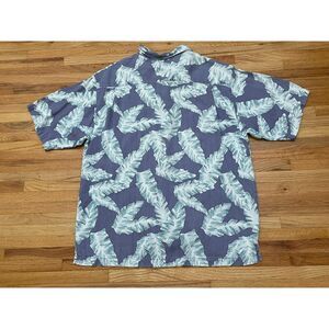 Tommy Bahama Men's L Blue Button-Up `00% Silk Shirt Leaf Beach Boho Topical