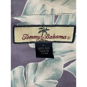 Tommy Bahama Men's L Blue Button-Up `00% Silk Shirt Leaf Beach Boho Topical.