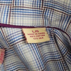 Tommy Bahama Men’s L Blue Plaid Silk Blend Long Sleeve Button Shirt Casual