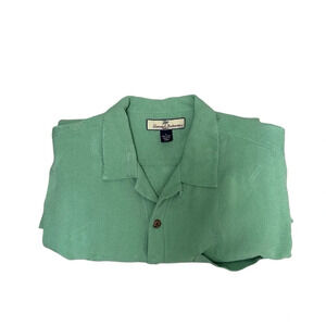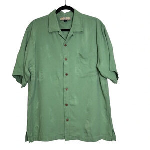 Tommy Bahama Men’s L Cocktail & Fruit Embroidered Green Silk Camp Shirt