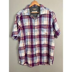Tommy Bahama Mens L Double Flora Plaid Palm Tree Hawaiian Shirt Coastal Resort