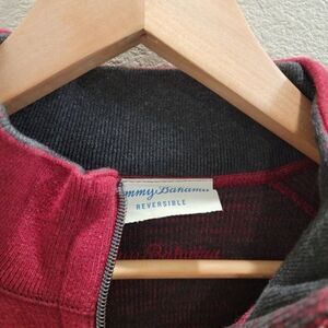 Tommy Bahama Men’s L Red Gray 1/4 Zip Pullover Cotton Sweater