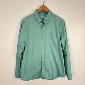 Tommy Bahama Men's Large Aqua Blue Cotton Silk Blend Button Up Shirt