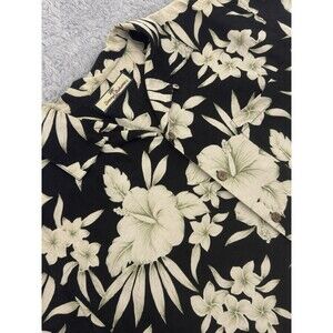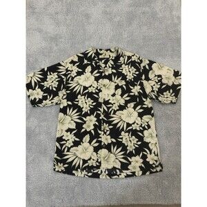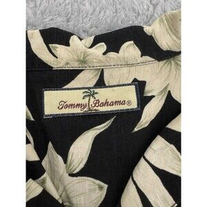 Tommy Bahama Men's Large Black Yellow Floral Silk Short Sleeve Hawaiian Shirt
