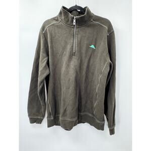 Tommy Bahama Men's Large Brown 1/4 Zip Pullover Long Sleeve Shirt Teal Logo