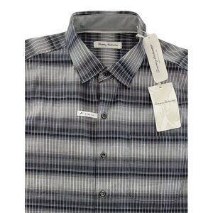 Tommy Bahama Men's Large Fog Grey Lazlo Ombre Stripe Silk Blend Shirt