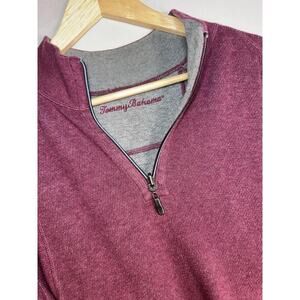 Tommy Bahama Men’s Large Quarter Zip Pullover Sweater Maroon Gray Lined Casual