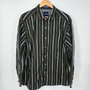 Tommy Bahama Men's Long Sleeve Button Up Black Green White Geometric Striped XL