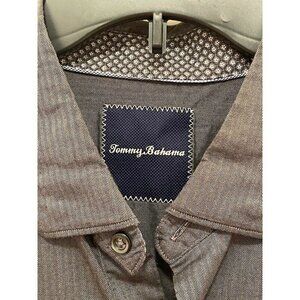 Tommy Bahama Mens Long Sleeve Button-Up Shirt Size L Grey Herringbone Pattern Wi