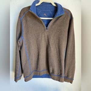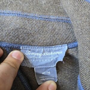 Tommy Bahama Mens M Sweater quarter Zip Reversible Blue Brown