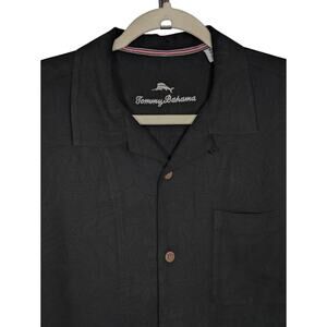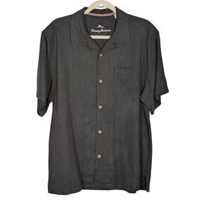 Tommy Bahama Men's Medium 100% Silk Black Hawaiian Short Sleeve Button up Shirt