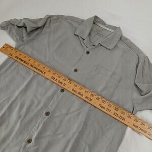 Tommy Bahama Men's Medium 100% Silk Taupe Embossed Short-Sleeved Hawaiian Shirt