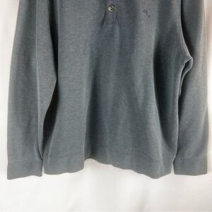 Stylish gray Henley sweater with button details. Perfect for casual wear.