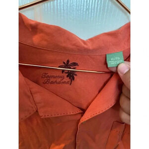 Tommy Bahama Men's Orange 100% Silk Short Sleeve Button Front Shirt Size XL