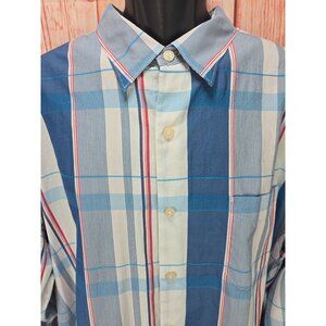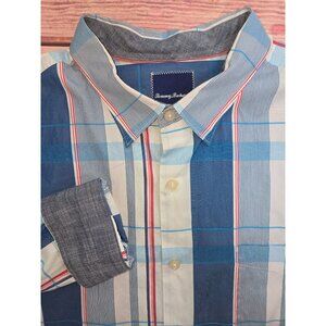 Tommy Bahama Mens Plaid Long Sleeve Button-Down Shirt 2XT Blue/White