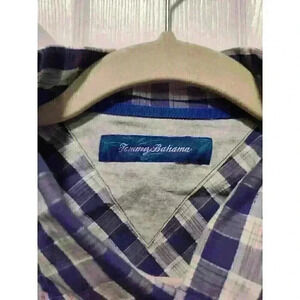 Elevate your wardrobe with this stylish Tommy Bahama button-up shirt. The plaid pattern, long sleeves, and collared neckline make it a versatile choice for any occasion, whether you're attending a party, going on a business trip, or just running errands. The shirt features a hidden button-down collar style, single front pocket, and embroidered logo accent.