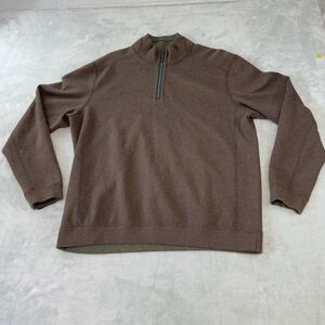Stay warm and stylish with this Tommy Bahama quarter-zip pullover. Crafted from a soft cotton blend, this brown knit sweater is perfect for layering during cooler months.
