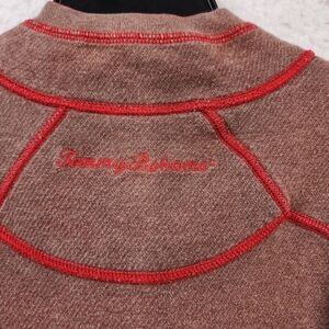 Men's Quarter-Zip Reversible Sweater from Tommy Bahama in Brown/ Red.