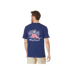 Tommy Bahama Mens Red White & Marlin Short Sleeve Lux T-Shirt Island Navy Small