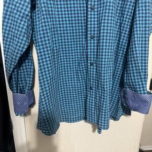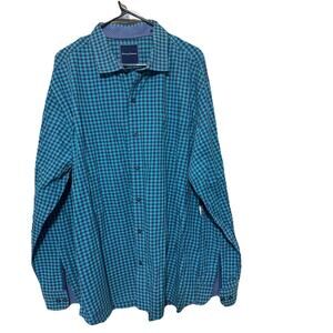 Tommy Bahama Men's Shirt Blue Checked Pima Cotton XL Button Up