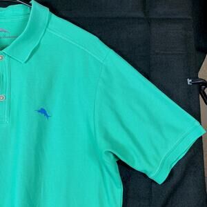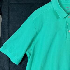 Tommy Bahama Mens Shirt Green Polo Short Sleeve Pima Cotton Medium