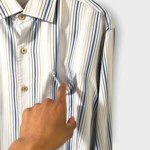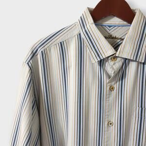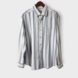 Tommy Bahama Mens Silk Blue Stripe Long Sleeve Button Up Shirt Sz XL Preppy
