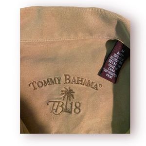 Tommy Bahama Mens Silk Shirt Medium Embroidered Flamingo Palm Trees Button Polo