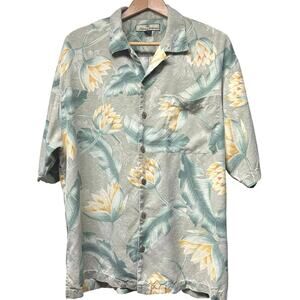 Tommy Bahama Men’s Silk Tropical Floral Button Up Short Sleeve Shirt Size Large