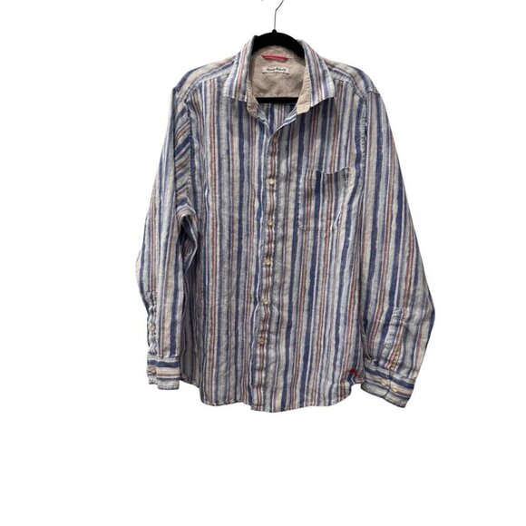 Tommy Bahama Men's Size XL Striped 100% Linen Button-Up Shirt