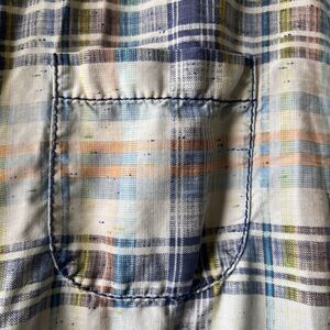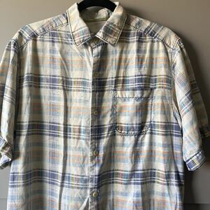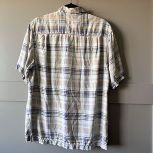 Tommy Bahama Mens Small Short Sleeve Button Up Silk Shirt Plaid Preppy Outdoor Beige Blue Orange