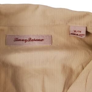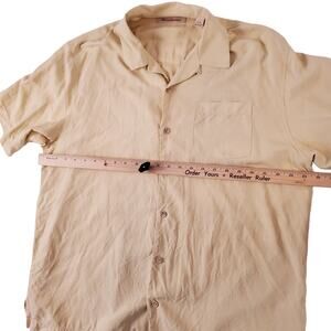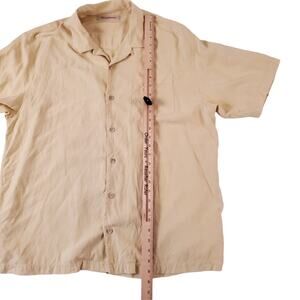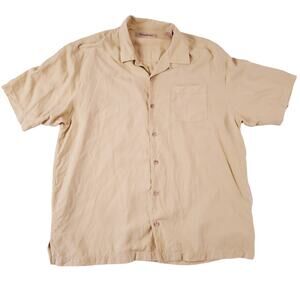 Tommy Bahama Mens Striped Beige Woven Silk Button Up Short Sleeve Shirt XL