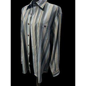 Tommy Bahama Mens Striped Long-Sleeve Button-Down Shirt 100% Silk Blue Beige