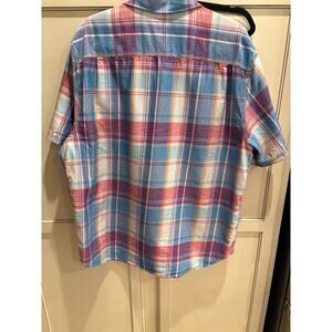 The Tommy Bahama Men's Summer Down Under Camp Shirt in Vibrant Sea is a stylish and comfortable button-up shirt perfect for summer. Made from a woven fabric, this short sleeve shirt features a classic fit with a spread collar and button closure. The vibrant sea plaid pattern adds a fun and tropical touch, making it a great choice for casual occasions. Easy to care for with machine washable instructions, this shirt is a versatile addition to any man's wardrobe.