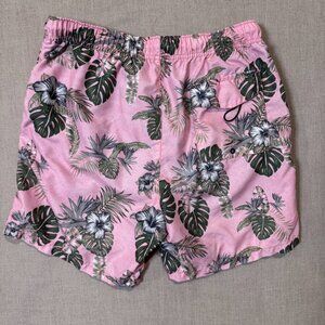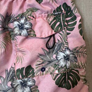 Tommy Bahama Men’s Swim Trunks Medium Pink Tropical Hibiscus Leaf Print