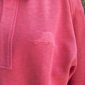 Tommy Bahama Men's Top Pullover Size M Red Short Zipper Embroidered Long Sleeves