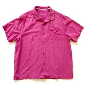 Tommy Bahama Mens Tropic Isles Silk Camp Shirt Size XL Pink Short Sleeve Resort