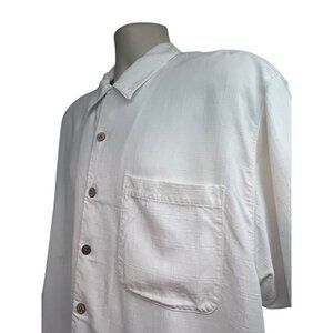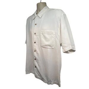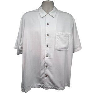 Tommy Bahama Mens Vintage White Embroidered Button Up Camp Shirt Large Pocket