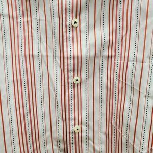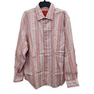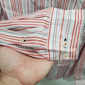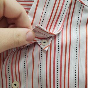 Tommy Bahama Men's White Orange Pinstripe Cotton Long Sleeve Button Up Shirt XL