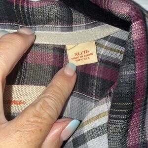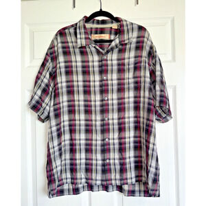 Tommy Bahama Men's XL 100% Silk Plaid Button Down Shirt Purple Gray Short Sleeve
