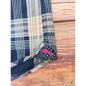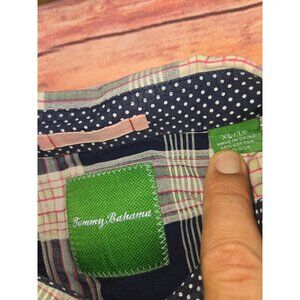 This shirt tells a story of comfort and style, woven with threads of cotton and silk. Designed by Tommy Bahama, it whispers of ocean breezes and tropical adventures. The blue plaid pattern evokes a sense of timeless elegance, while the short sleeves add a touch of casual ease, inviting you to embrace leisurely days.