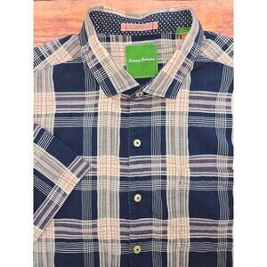 Tommy Bahama Mens XL Blue Plaid Shirt 88% Cotton 12% Silk Blend
