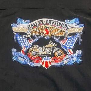Tommy Bahama Men's XL HARLEY DAVIDSON Embroidered Silk Button Down Shirt Black